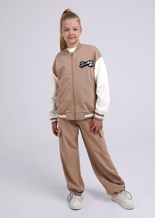 Бомбер с контрастными рукавами в стиле ""колледж"" - это универсальная вещь в твоем гардеробе! Свободная посадка, объемная нашивка спереди, эластичные пояс и манжеты из кашкорсе. Бомбер выполнен из плотного футера. Смело сочетай модель с юбкой или брюками!