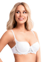 Бюстгальтер балконет с формованной чашкой. Выполнен из эластичного кружева. Бретели декорированы "ушком" из сетчатого полотна для визуального увеличения груди и лучшей поддержки.