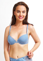 Бюстгальтер с формованной чашкой с градуированным push-up. Чашка гладкая декорирована по боковой части кружевом. Пояс изделия из кружева.