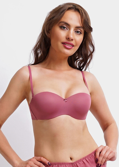 Бюстгальтер формы «анжелика» будет незаменим для ношения без бретелей, а силиконовые ленты по верху и низу пояса изделия придадут дополнительную поддержку. Бюстгальтер с формованной чашкой с небольшим push-up по низу приподнимет и придаст еще более соблазнительную форму груди.