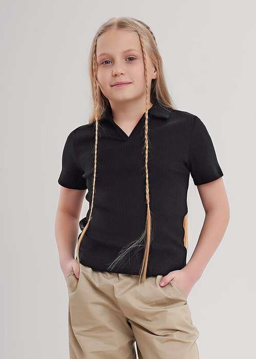 Базовый джемпер из лапши с коротким рукавом, отложным воротником и планкой. Классический джемпер отлично подойдет для создания повседневных образов, хорошо сочетается с брюками, юбками и повседневными джинсами.