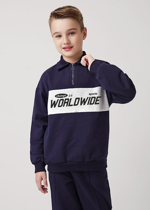 Стильный джемпер в стиле ""колорблок""- то, что нужно для создания классного образа и отличного настроения! Модель из мягкого футера дополнена короткой молнией и контрастной вставкой с принтом. Воротник и манжеты выполнены из эластичного трикотажа.