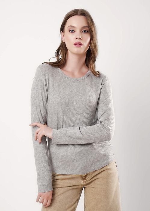 Фуфайка из вискозного трикотажного полотна кашкорсе с эластаном. Округлая горловина с окантовкой. Длинный втачной рукав. По низу рукава и изделия -мелкий оверлок.