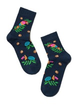 Носки для девочки с резинкой пикот, выделенным бортиком и рисункосм сердечко на паголенке
