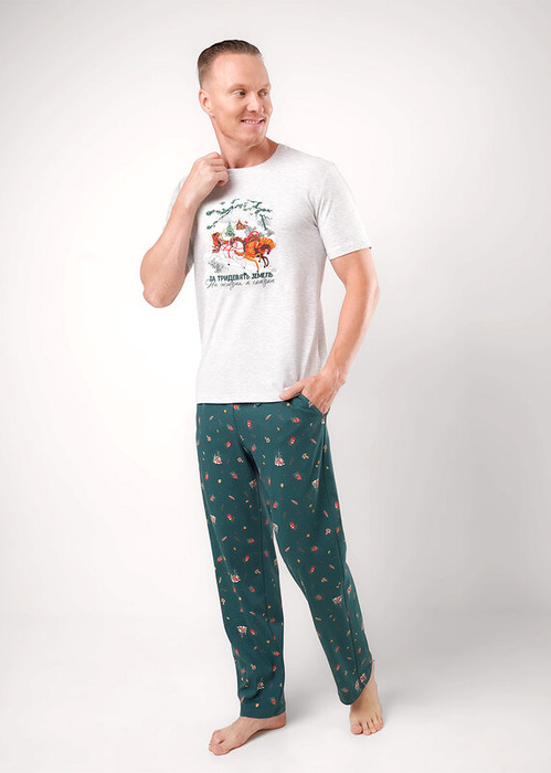 Акция Clever Пижама мужская CLE MHP450723/2 меланж св.серый/т.зелёный