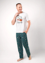 Набор состоящий из футболки и брюк. Футболка из хлопковой кулирной глади с добавлением эластана с коротким рукавом и принтом. Брюки из плотной хлопковой кулирной глади с добавлением эластана на широком поясе с резинкой и шнуром, по бокам карманы.