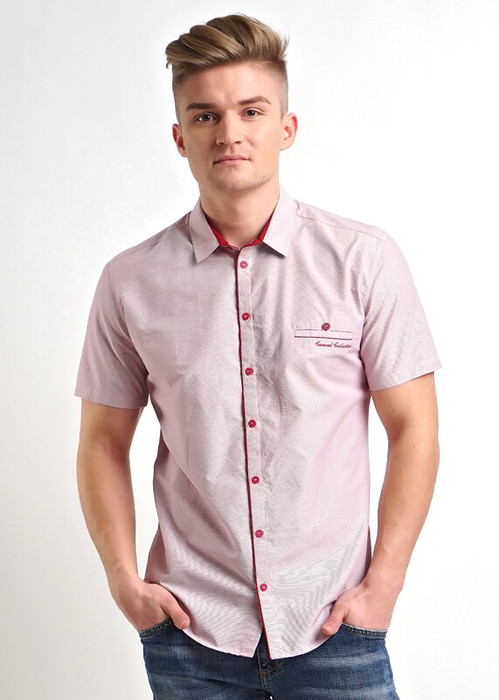 ОТПУСКАЮТСЯ Р/Р!!! Мужская рубашка с коротким рукавом и стояче-отложным воротником с застежкой на петли-пуговицы. Модель украшают кант по планке, нагрудный карман с листочкой с кантом на пуговице, отстрочки по окату и плечу, декоративная деталь спинки с жаккардом, вышивки.