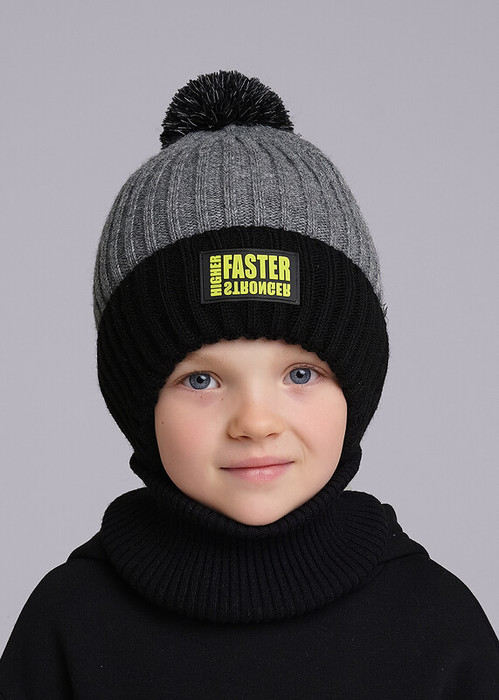Акция Clever Шапка детская CLE 433843ап флис чёрный/меланж серый