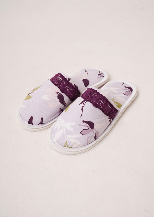 Закрытые домашние тапочки на толстой подошве из хлопкового трикотажного полотна с добавлением модала. Сверху тапочки кружево.