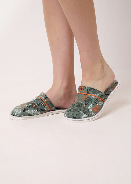 Акция Clever Тапки женские CLE SW15-1184C зелёный/т.оранжевый