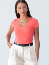 Vilatte Футболка облегающая из хлопка в рубчик с V вырезом и матовым покрытием м