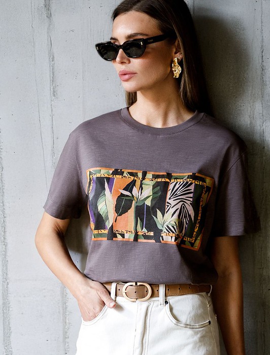 Состав: 100%Хлопок Параметры модели на первом фото: Рост 170, бюст 89, талия 63, бедра 92Футболка выполнена из фактурного полотна из 100% хлопка. Модель с лаконичным авторским принтом легко впишется в любой весенне-летний гардероб. Ткань имеет характерный рисунок черточки за счет сочетания разных волокон хлопка 140-150 г. Хорошо держит форму и поддерживает комфортный микроклимат в течении дня.