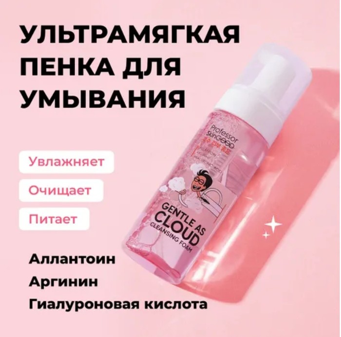 Ультрамягкая пенка для умывания лица GENTLE AS CLOUD CLEANSING FOAM от Professor SkinGOOD (Профессор Скингуд) мягко и бережно очищает кожу. Аллантоин стимулирует обновление эпидермиса, помогает отшелушиванию ороговевших клеток, препятствует появлению черных точек. Мощный антиоксидант нейтрализует вредное воздействие свободных радикалов, ускоряет регенерацию тканей и замедляет старение клеток. Способствует заживлению кожи, восстанавливает ее барьерные свойства, поэтому аллантоин добавляют в уход за кожей для людей с дерматитом. Аргинин - аминокислота, которая участвует в синтезе белков для всех тканей организма. В уходе за лицом влияет на микроциркуляцию крови, питает клетки и снабжает их кислородом, нормализует защитные функции кожи. Пенка для лица с аргинином стимулируют синтез коллагена и эластина, повышает тургор, укрепляет кожный каркас, заметно улучшает цвет лица. Низкомолекулярная гиалуроновая кислота в умывалке для лица насыщает кожу влагой, делая ее более упругой и здоровой. Притягивает и удерживает молекулы воды, тем самым благотворно влияя на общее состояние эпидермиса