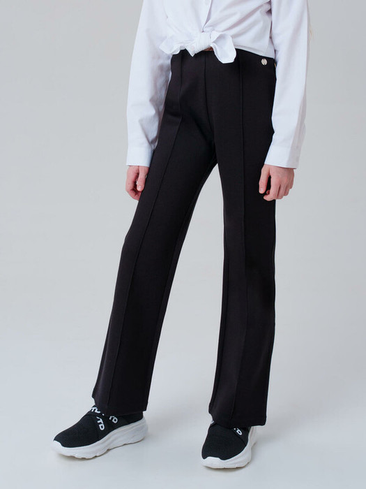 Идеальные брюки для школы, сочетающие комфорт и аккуратный внешний вид. Модель с посадкой Bootcut — это удлиненные джинсы, плотно облегающие бёдра. Расширение у моделей bootcut более сдержанное: оно начинается чуть ниже колена и плавно доходит до нижней части брюк. Обеспечивает свободу движений, а резинка со шнурком позволяет легко регулировать посадку по фигуре.