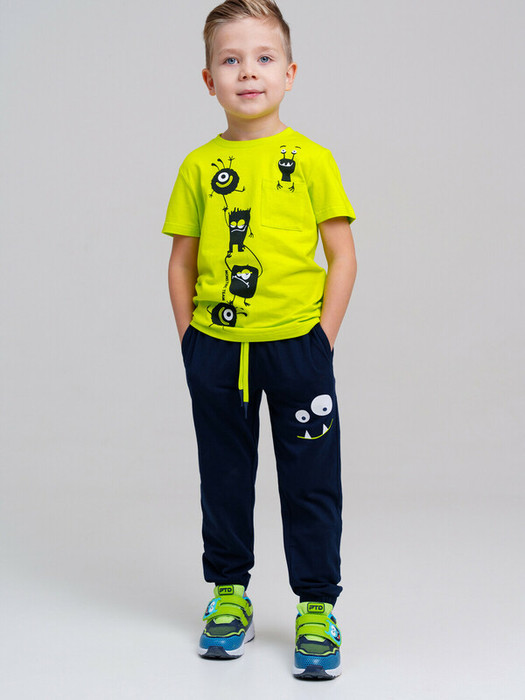 Костюм детский для мальчика. Комплект: футболка, шорты с высоким содержанием хлопка 95%. Благодаря наличию эластана в составе ткани изделие проще в уходе и держит форму. Штаны на резинке со шнурком. Боковые карманы.