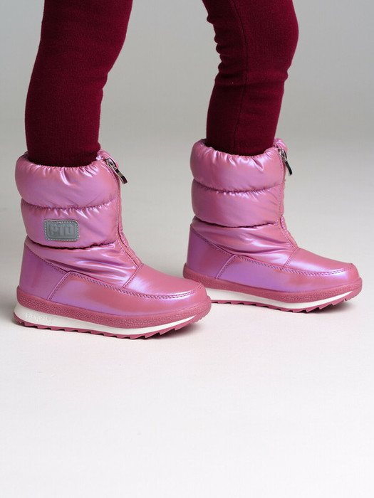 Верх из искусственной кожи и текстильного материала с водоотталкивающим покрытием. Подкладка и стелька выполнены из шерстяного меха 80%. Застежка на молнию. Глухой клапан в области застежки защищает от проникновения влаги внутрь. Формоустойчивый задник поддерживает стопу в правильном положении. Подошва имеет противоскользящий протектор. Съемная стелька позволяет хорошо просушить обувь после прогулки. Рекомендованный температурный режим от 0°С до -15°С.