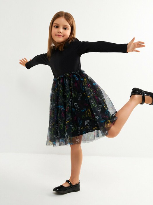 Совместные покупки Пермь Детская одежда Платья — Акция по 20.01 Acoola Платье детское для девочек Pencil2 20230200058 черный прин