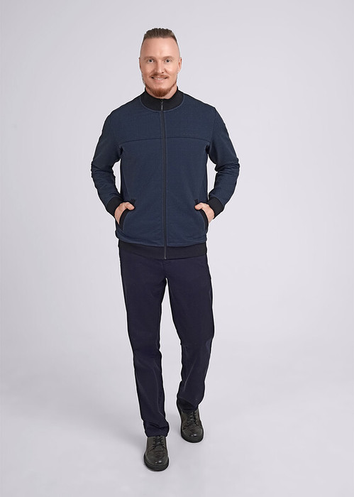 Мужская куртка на молнии из плотного трикотажного полотна футер с твидовой набивкой. Карманы, манжеты и стойка добавляют удобства в носке. Стильное решение для повседневного образа.