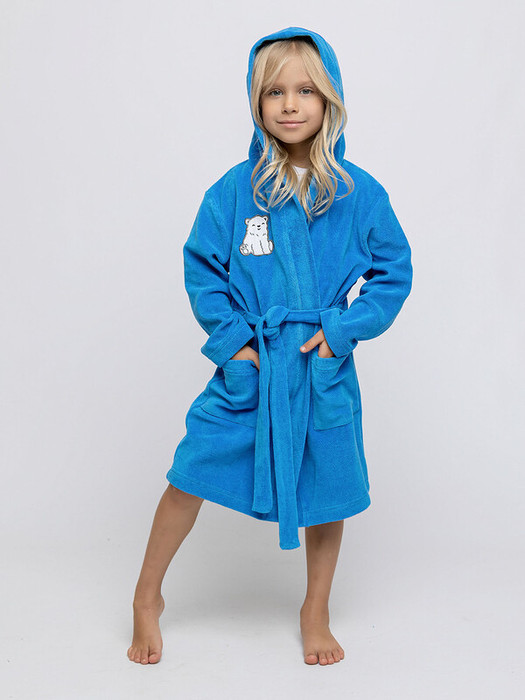 Халат махровый голубой для детей с нашивкой в виде белого мишки. Красивый халат из односторонней махры с поясом и карманами. Приятная к телу ткань отлично впитывает влагу.Характеристики:Ткань: Махра односторонняя, 80% хлопок, 20% лайкраПроизводитель: batik