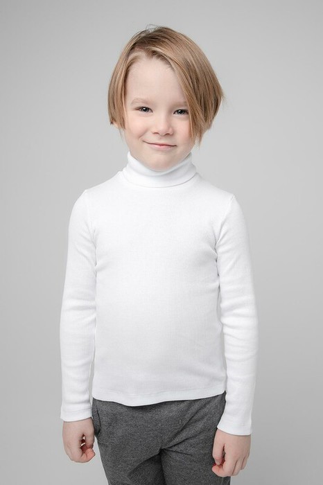 Водолазка для мальчика с длинным рукавом и воротником с отворотом в рубчик. Мягкий материал изделия приятен к телу и хорошо тянется. Все трикотажные изделия производятся в соответствии с нормами швейцарского сертификата ЭкоТекс.