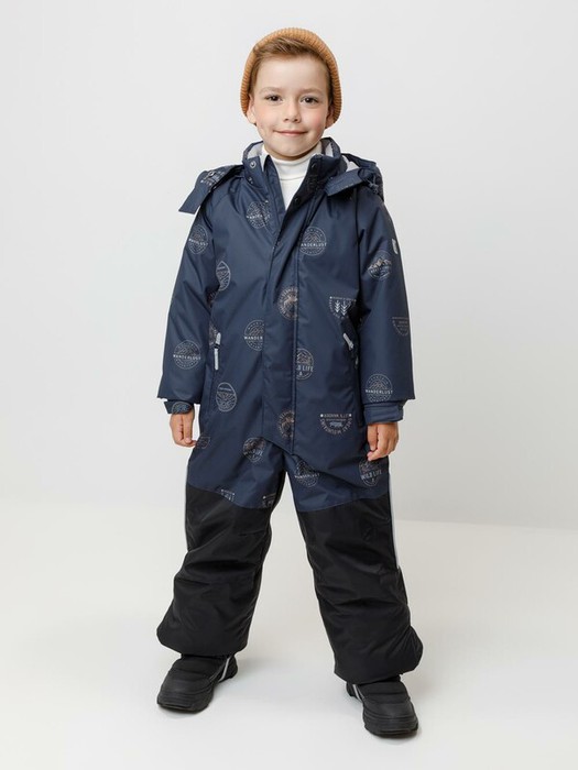 Зимний комбинезон для мальчика с утеплителем SEE®: 250 г/м2 . Выполнен из мембранной ткани с дополнительной тефлоновой обработкой, которая предохраняет изделие от загрязнений и отталкивает влагу. Подклад выполнен из 100% полиэстера Tricot. Комбинезон застёгивается на молнию и внешнюю планку на липучках и кнопках, предусмотрена защита подбородка. Съёмный капюшон имеет эластичную утяжку со стопперами. Резинка по спинке обеспечивает лучшее прилегание. По бокам два кармана на молнии. Эластичные манжеты на рукавах  регулируются по ширине с помощью липучки, по низу изделия - с помощью кнопки. Внутренняя противоснежная юбка защищает обувь от попадания снега и удерживает комбинезон в закреплённом положении. В размерах с 98-104 по 116-122  предусмотрены отстёгивающиеся штрипки. Во всех изделиях верхнего ассортимента для безопасности ребёнка предусмотрены светоотражающие элементы.