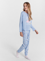 Пижама для мальчика из натурального хлопка. Джемпер с длинными втачными рукавами и брюки с эластичной резинкой в поясе. Мягкие манжеты по низу брюк сделаны из материала в рубчик. Оригинальная набивка и принт выполнены из стойких текстильных гипоаллергенных красителей. Изделие сохраняет цвет и форму после многократных стирок. Все трикотажные полотна производятся в соответствии с нормами швейцарского сертификата ЭкоТекс.
