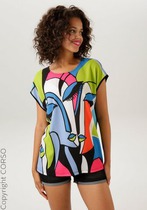 Легкая свободная блуза с короткими рукавами из длинноволокнистого гребенного хлопка. По полочке декоративная складка с эффектом запаха.