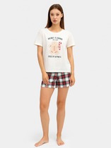 Комплект для комфортного сна и отдыха из трикотажа с нежным рисунком из 100% натурального хлопка. Футболка с короткими рукавами и спущенной линией плеча комфортно садится по фигуре. Шорты с мягким поясом на резинке. В поясе шорт атласная лента. Свободный силуэт не сковывает движения.