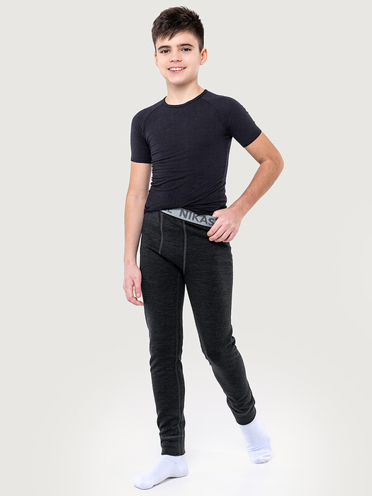 Кальсоны для мальчика ТЕРМО из трикотажного полотна с начесом. Внешний слой состоит из шерстяных и акриловых нитей, сохраняющих тепло и выводящих лишнюю влагу. Шерсть мериноса, входящая в состав изделия, очень тонкая, мягкая, не вызывает аллергии, раздражения и не колется. Внутренний слой с начесом из хлопка с полиэфиром. Легкие и приятные на ощупь кальсоны хорошо сохранят тепло в любую погоду.Функционал модели: •    удобные эластичные манжеты, •    плоские швы. Теплые, комфортные кальсоны для ежедневного использования, совершенно не колются - можно надевать на голое тело. Подходит для средней и низкой активности, являются отличной альтернативой колготкам. Подойдут на температуру до -30°С при условии соблюдения принципа многослойности. Рекомендуем приобрести комплектом аксессуары, обувь и другие вещи из капсулы в карточке товара, которые отлично сочетаются с изделиями коллекции.