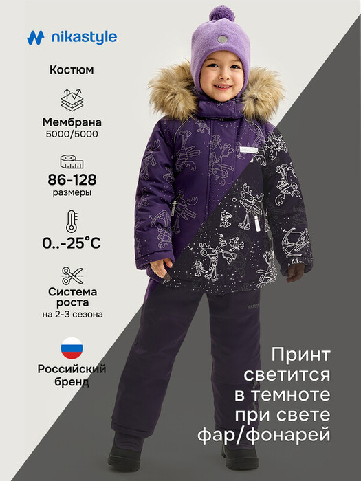 Костюм ДРУЗЬЯ с системой роста на один размер (длина рукавов и брючин увеличивается на 4-5см). Костюм из мембранной ткани 5000/5000 с водо- грязеотталкивающей технологией TEFLON. Мембранная ткань это не продуваемый и водонепроницаемый материал, который надежно защищает от ветра и влаги. Благодаря дышащим свойствам мембраны ребенку будет комфортно в любую погоду и он не вспотеет. Дополнительно на ткань нанесен светоотражающий принт. Ткань обработана снаружи экологически чистым протектором TEFLON для защиты от воды и грязи.