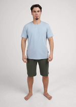 Мужские удлиненные шорты (бриджи) из трикотажного полотна с эффектом "варенки". Модель с боковыми карманами, на притачном поясе с отстроченной с эластичной тесьмой и шнуром в нем для регулирования степени прилегания.