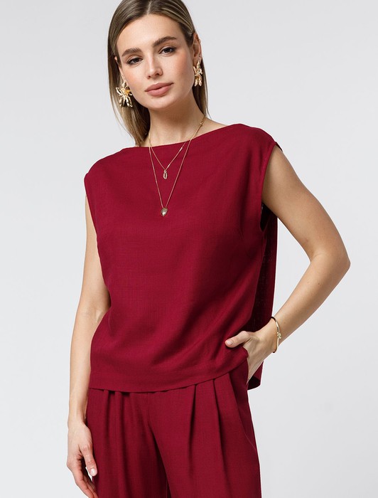 Состав: 70%Вис 30%Лен Параметры модели на первом фото: Рост 170, бюст 89, талия 63, бедра 92Лаконичный топ выполнен изо льна с вискозой. Изделие с горловиной формы лодочка, без застежек. Лён в составе обеспечивает прочность и воздухопроницаемость, вискоза эластичность и гладкость ткани. Благодаря такому сочетанию изделие хорошо драпируется, меньше мнется и сохраняет форму в течении долгого времени. Сочетается в костюме с брюками D24.222 и шортами D28.052