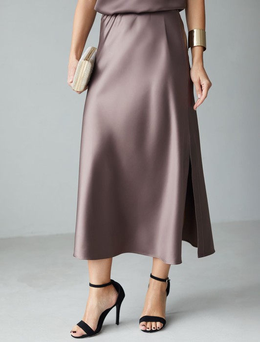 АКЦИЯ Юбка миди с разрезом из струящегося плотного сатина