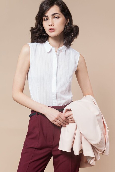 Совместные покупки Пермь Женская одежда Блузки, рубашки — Акция Vilatte Базовая блузка из хлопка со спандексом D29.653 белый