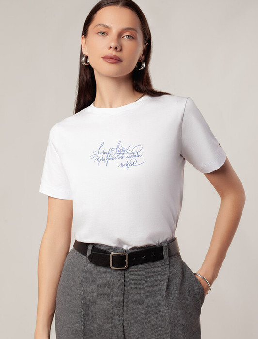 Совместные покупки Пермь Женская одежда Футболки — Акция Vilatte Футболка из премиального хлопка с авторским принтом D49.110 белый