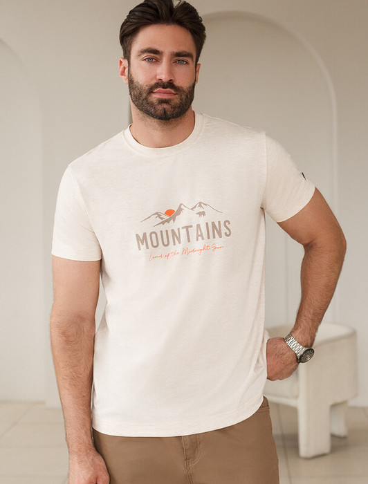 Совместные покупки Пермь Мужская одежда Футболки — Акция Vilatte Футболка из премиального хлопка с авторским принтом U49.045 овсян