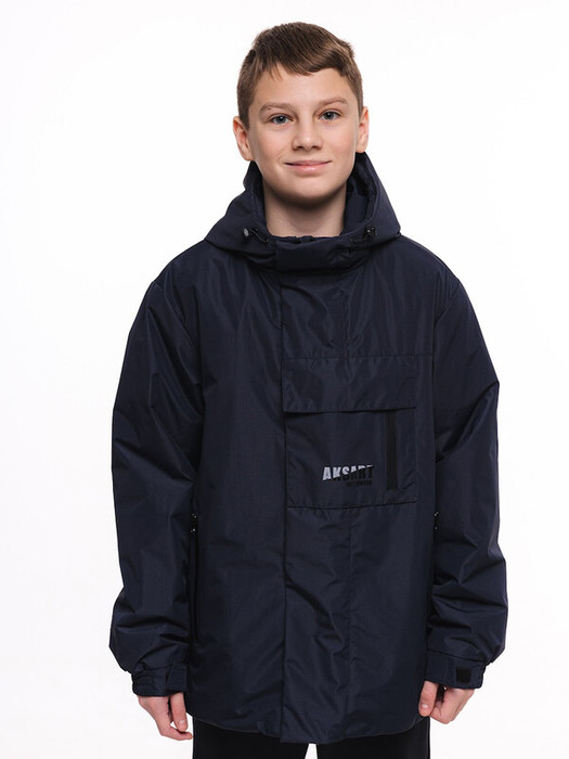Однотонная стильная куртка для мальчиков. Ткань с отделкой рип-стоп. Подкладка трикотаж-интерлок (хлопок 100%). Вся фурнитура лаконичного черного цвета. Фронтальная молния под широкой ветрозащитной планкой. Планка фиксируется кнопками. Оригинальный нагрудный накладной карман куртки выполнен с заходом на ветрозащитную планку, что создает иллюзию ассиметричной фронтальной застежки. Вход в карман закрыт клапаном. На этом кармане дополнительно выполнен прорезной карман с молнией. На молниях и боковые карманы куртки. Манжеты рукавов обработаны эластичной тесьмой и патами с лентой-«велькро». Несъемный капюшон. Регулировка лицевой части капюшона и низа куртки выполнена с помощью кулисы со шнуром-резинкой и фиксаторами. На накладном кармане и правом рукаве куртки светоотражающий термопринт, в боковом шве светоотражающий флажок.Характеристики:Ткань верха: курточная с отделкой Rip stop WR PUПодклад: хл / п/эУтеплитель: слайтекс 100 г/кв.м