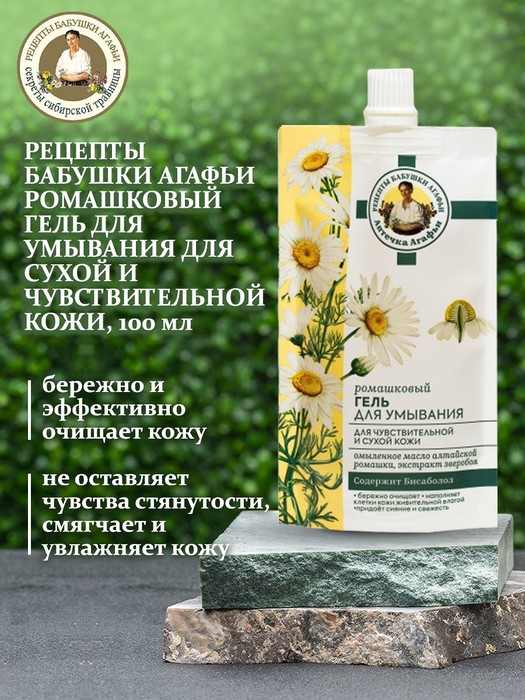 Ромашковый гель бережно и эффективно очищает кожу, не оставляя чувства стянутости, смягчает и увлажняет её.