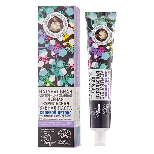 Натуральная сертифицированная зубная паста Рецепты бабушки Агафьи Черная Курильская Солевой Детокс удаляет зубной налет от чая, кофе, табака, укрепляет десны.