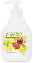 Жидкое крем-мыло «Олива и вишня» обладает нежной консистенцией и приятным ароматом, очищает, увлажняет и питает кожу рук.
