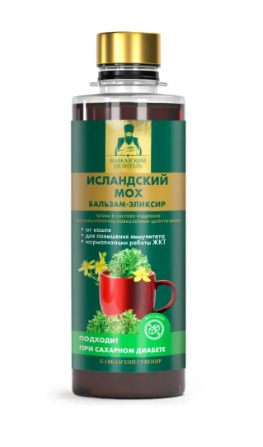 Исландский мох – главный компонент, богатый полисахаридами и лишайниковыми кислотами, благодаря которым бальзам-эликсир может стимулировать иммунную систему, повышая сопротивляемость организма к различным инфекциям и заболеваниям.