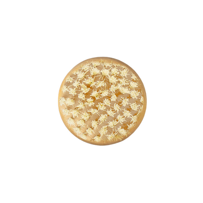 Массажная щётка для сухого массажа круглой формы с искусственной щетиной. Улучшает кровообращение и лимфоотток, активно борется с целлюлитом, помогает избежать вросших волосков и отшелушить омертвевшие клетки. Искусственный ворс гипоаллергенен, подходит для людей с повышенной чувствительностью кожи.