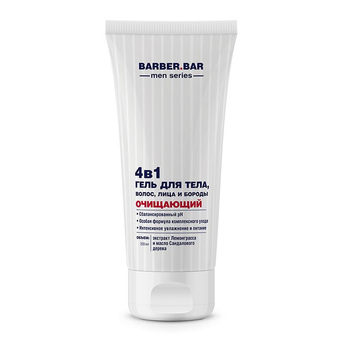 Совместные покупки Пермь Косметика и парфюмерия Мужская косметика — BARBER BAR Гель мужской для тела, волос, лица и бороды 4 в 1 Очищающий
