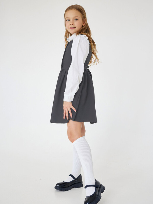 Сарафан для школы серый со сборкой по талии. Утяжка на поясок, декоративные пуговицы по центру. Школьный сарафан для девочек из плотной костюмной ткани. Характеристики:Ткань:Костюмная ткань (Вискоза 80%, полиэстер 20%) Производитель: batik