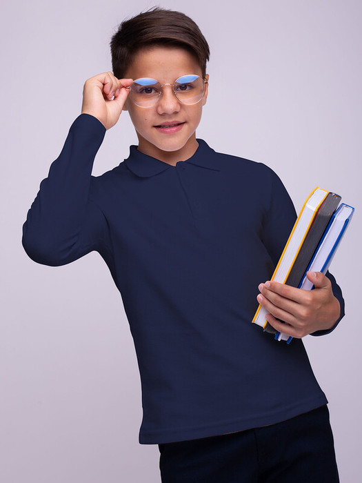 Футболка поло синяя в школу для мальчика с длинным рукавом.  Характеристики:Размеры (рост): 122-146 Материал: Пике 100% хлопок Производитель: batik