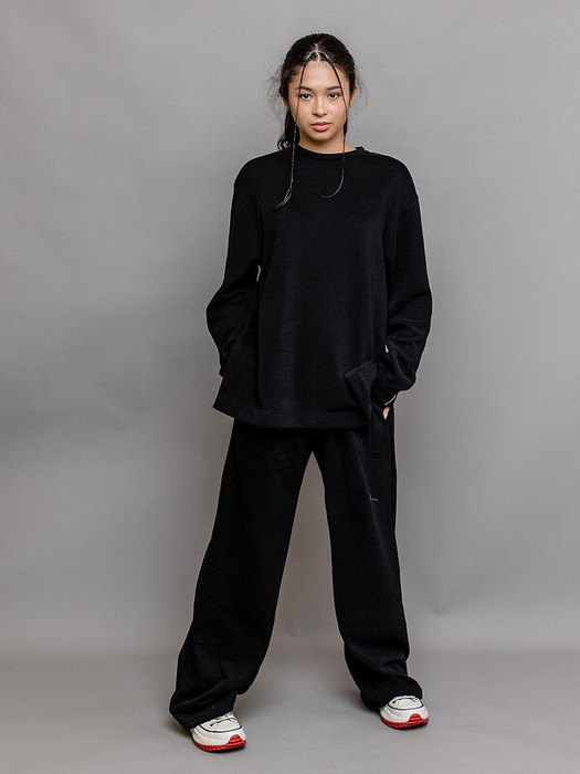 Комплект трикотажный свободного кроя в черной расцветке: джемпер и брюки-палаццо. Плоские швы, круглая горловины, разрезы по бокам. Детский и подростковый спортивный костюм из двухслойного трикотажа — идеальный вариант для активного отдыха и повседневной носки. Характеристики:Ткань верха: трикотаж двухслойный65% хлопок, 35% полиэстерПодклад: карманы супремПроизводитель: Batik