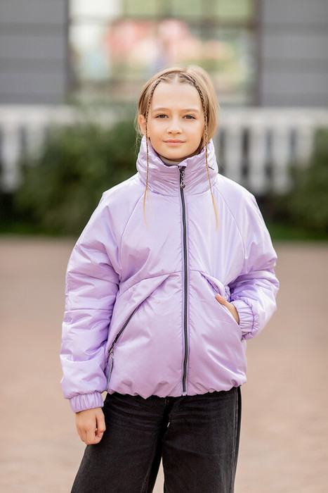 Куртка для девочки Ася в стиле спорт-шик с перламутровым эффектом в лиловой расцветке. Капюшон-трансформер сворачивается в воротник, а спереди прорезные карманы на молнии. Курточная ткань с водоотталкивающим покрытием DWR. На рукавах стеганные манжеты на резинке.   Особенности:  Водоотталкивающая пропитка материала DWR  Регулировка объёма капюшона Внутренний карманСветоотражающие элементыВысокий воротник Характеристики:Ткань верха: Курточная с перламутровым покрытиемПодклад: полиэстер Утеплитель: 100 гр Температурный режим от +5 до -10 СПроизводитель: batik