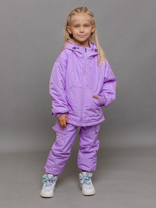 Комплект стеганый Орли детский в сиреневом цвете – тренд 2024. Куртка имеет свободный крой со спущенной линией плеча. Куртку и брюки можно носить отдельно. Комплект утепленный из тонкой плотной мембранной ткани с подкладкой из гладкой мягкой таффеты. Куртка с застежкой на молнию, регулируемым капюшоном, вместительным карманом-кенгуру. Низ рукава с мягкой трикотажной манжетой. Низ куртки фигурный с удлиненной спинкой и боковыми разрезами. Брюки-джоггеры на эластичном поясе с кулисой для регулировки ширины, удобными карманами и боковыми накладными карманами с клапаном. Низ штанин с трикотажным манжетом. Комплект представлен в широкой размерной сетке от 104 до 134 роста.