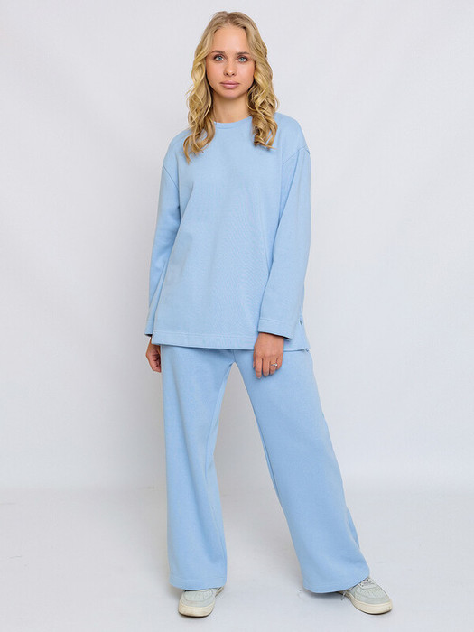 Комплект Бетани из футера голубой: толстовка и брюки. Трикотажный костюм для детей и подростков подойдет в качестве элемента повседневного гардероба в любое время года. Оверсайз-силуэт и длинный рукав обеспечат комфорт и свободу движений, а карманы в брюках добавляют удобства. Характеристики:Ткань верха:трикотаж двухслойный 65% хлопок, 35% полиэстерПодклад:супрем (карманы)Производитель: Batik