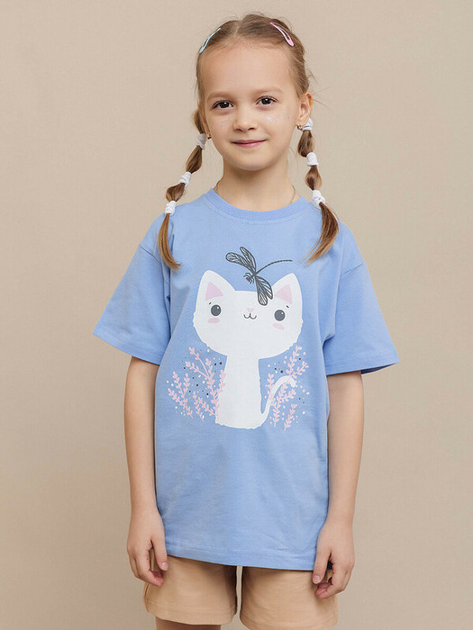 Футболка для девочки голубая с коротким рукавом из супрема. Из мягкого, гипоалергенного полотна с принтом в виде милого котика. Качественный пошив, выдержит множество стирок, при соблюдении рекомендаций по уходу. Футболка изготовлена из гипоаллергенного материала супрем пенье, который не вызывает раздражение и позволяет коже дышать.Характеристики:Ткань: Супрем пенье 92% хлопок 8% эластанПроизводитель: batik